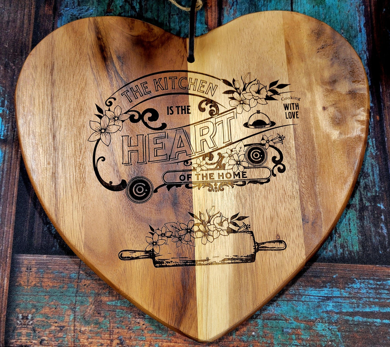 Expertly crafted, our laser engraved wood cutting boards are not only functional for all your kitchen needs, but also make beautiful decorative pieces. Their dual use allows for efficiency and style in the kitchen. Add a touch of elegance to meal prep with our engraved cutting boards.