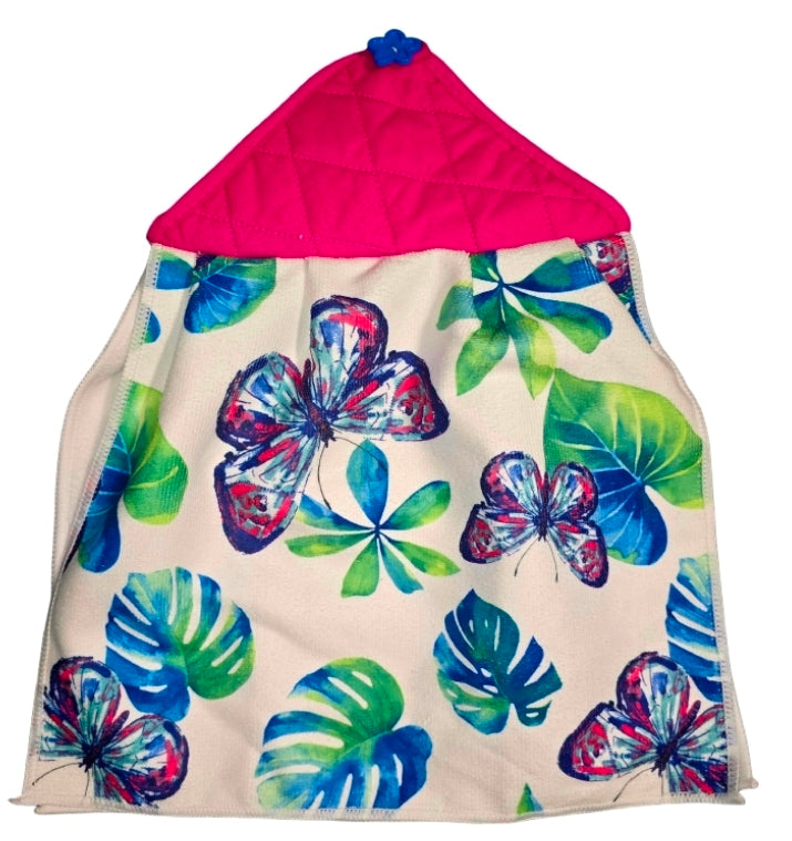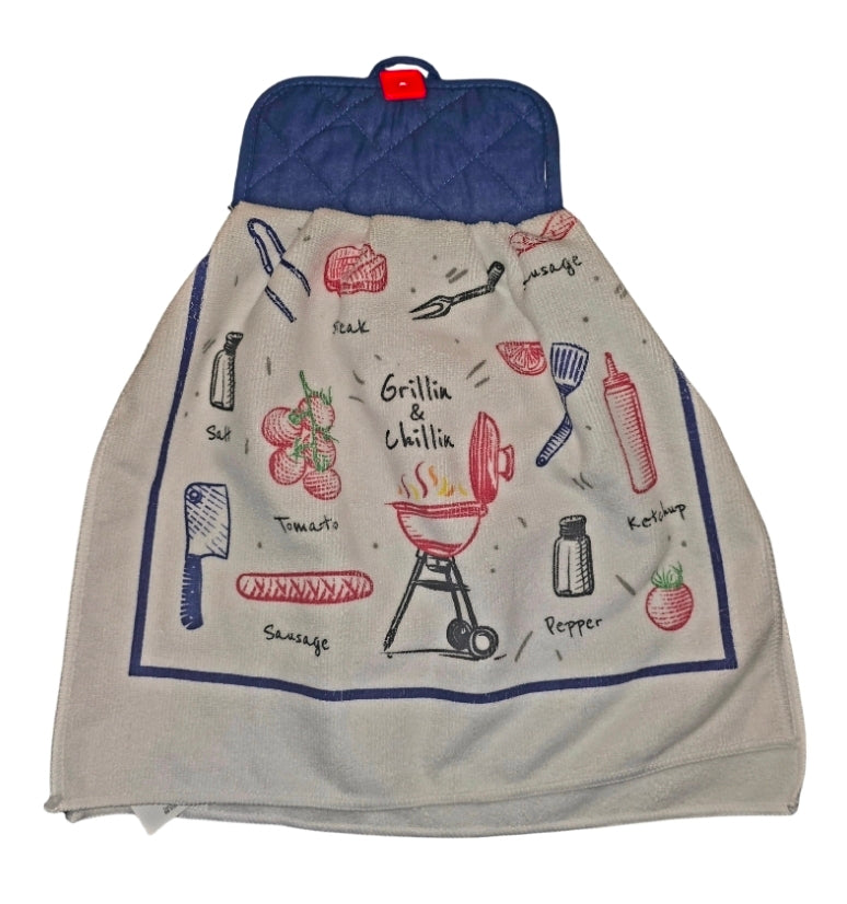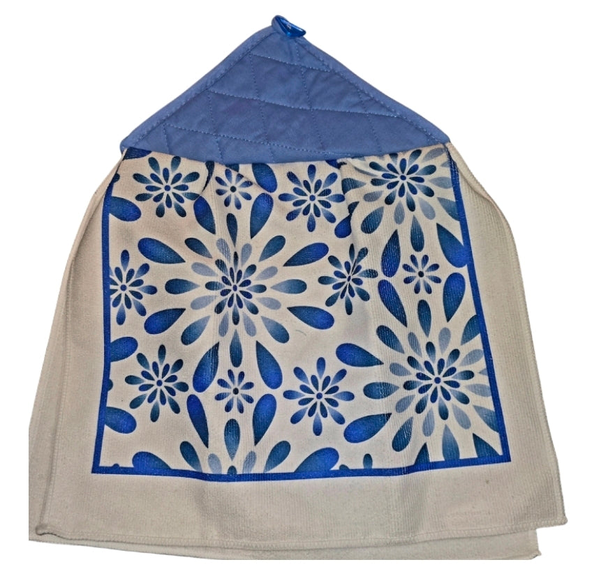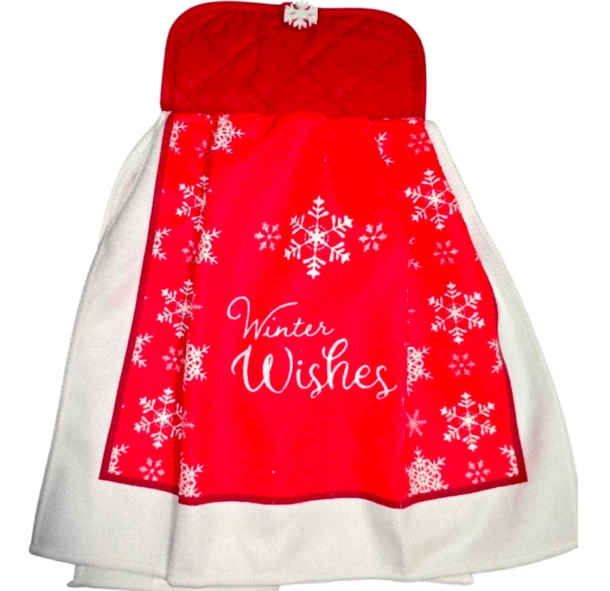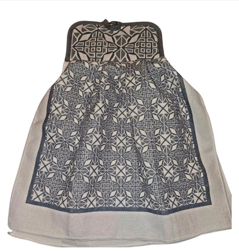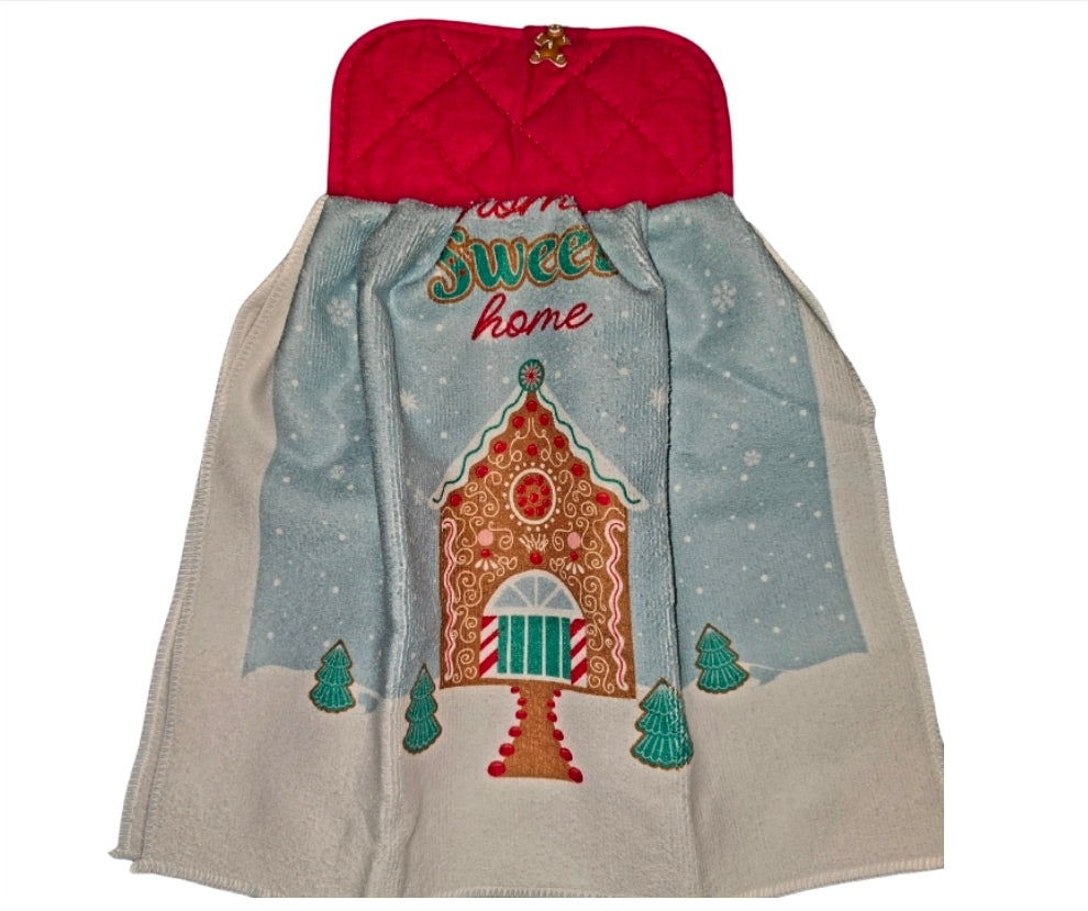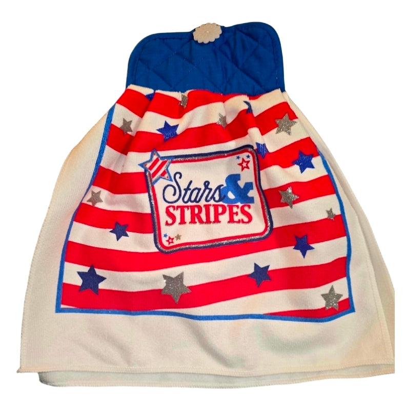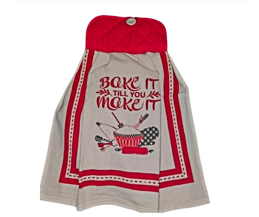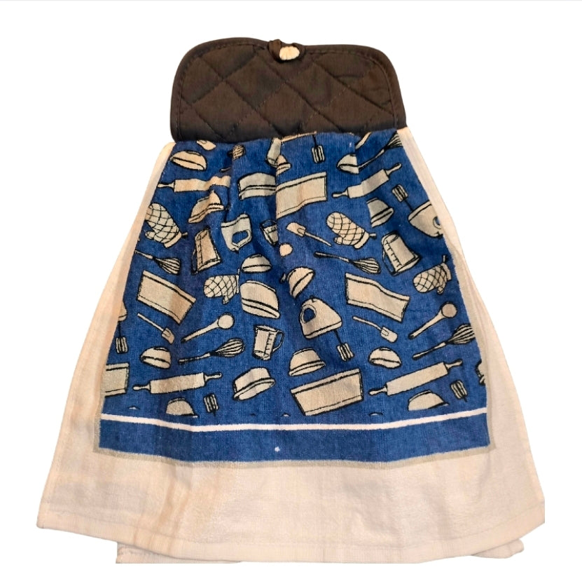 Add a touch of charm and convenience to your kitchen with these adorable hanging kitchen towels! Each towel features a quilted topper with a secure button closure, making it easy to hang from your oven handle, fridge, or drawerâno more towels slipping to the floor!