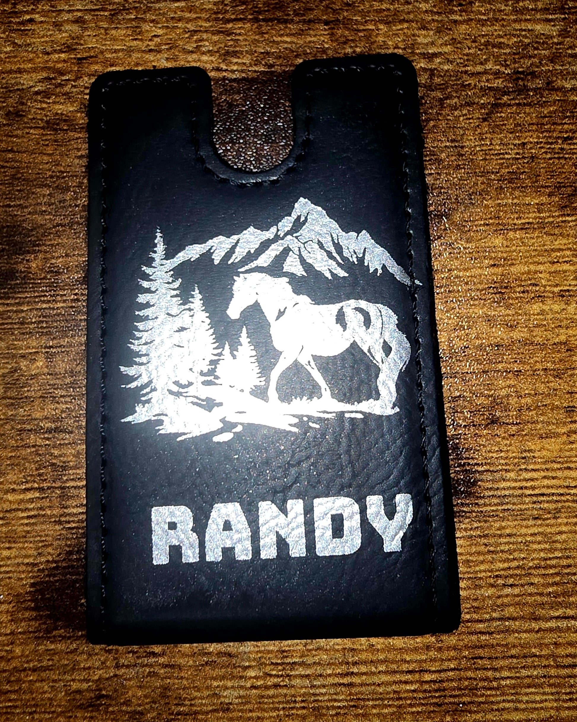 Use this money clip to engrave something special for a gift or even yourself. The faux leather is the perfect feel and will easily fit in a pocket or bag. Available in Buckskin and Black.
